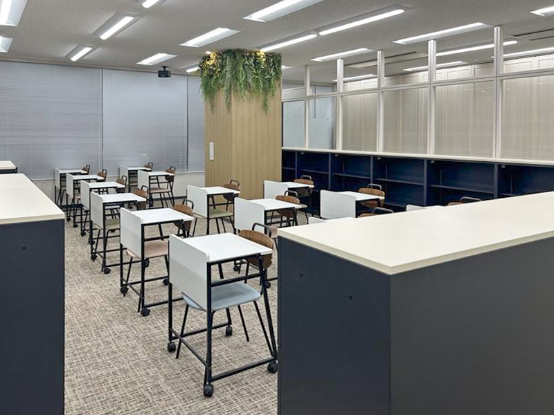スクールレイアウトの自習室はスライディングウォールを備えており、2部屋に仕切ることも可能です。