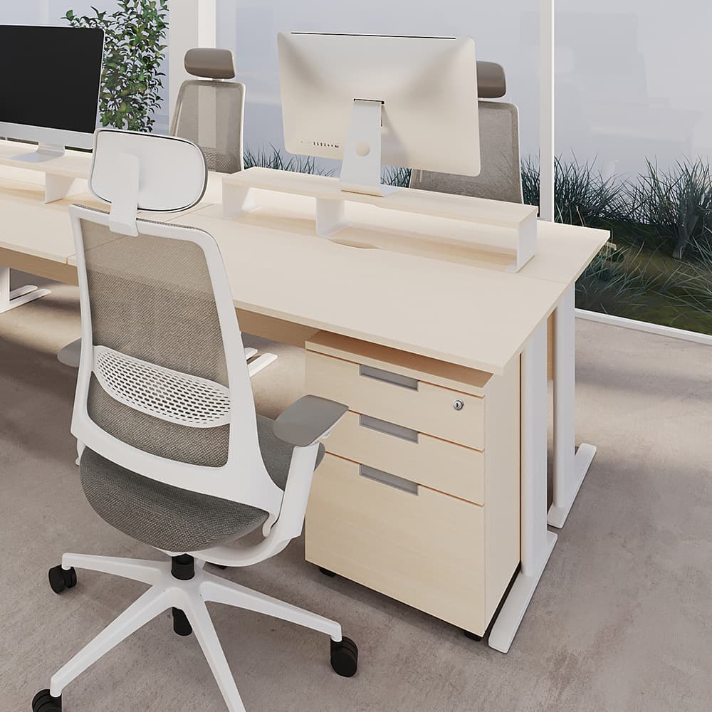 デスク下や周りに収納力をプラスするデスクワゴン、サイドキャビネット。デスクワイドワゴンを見る