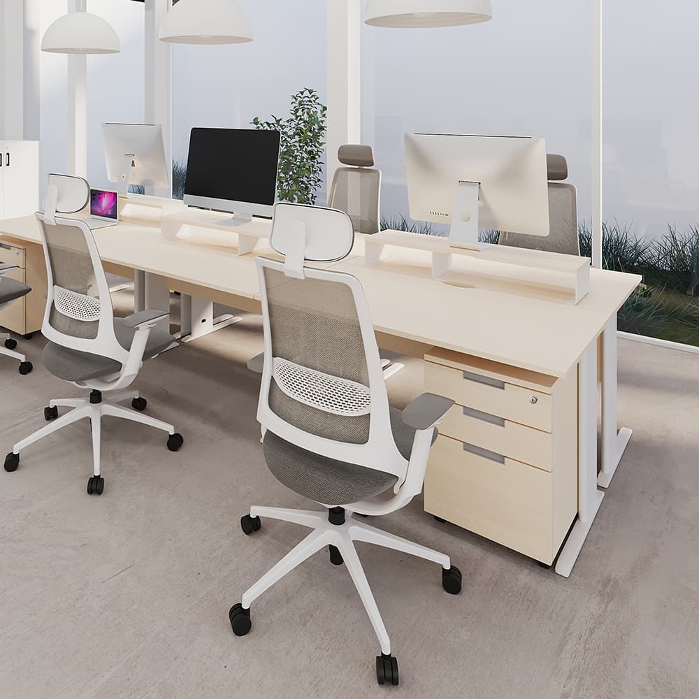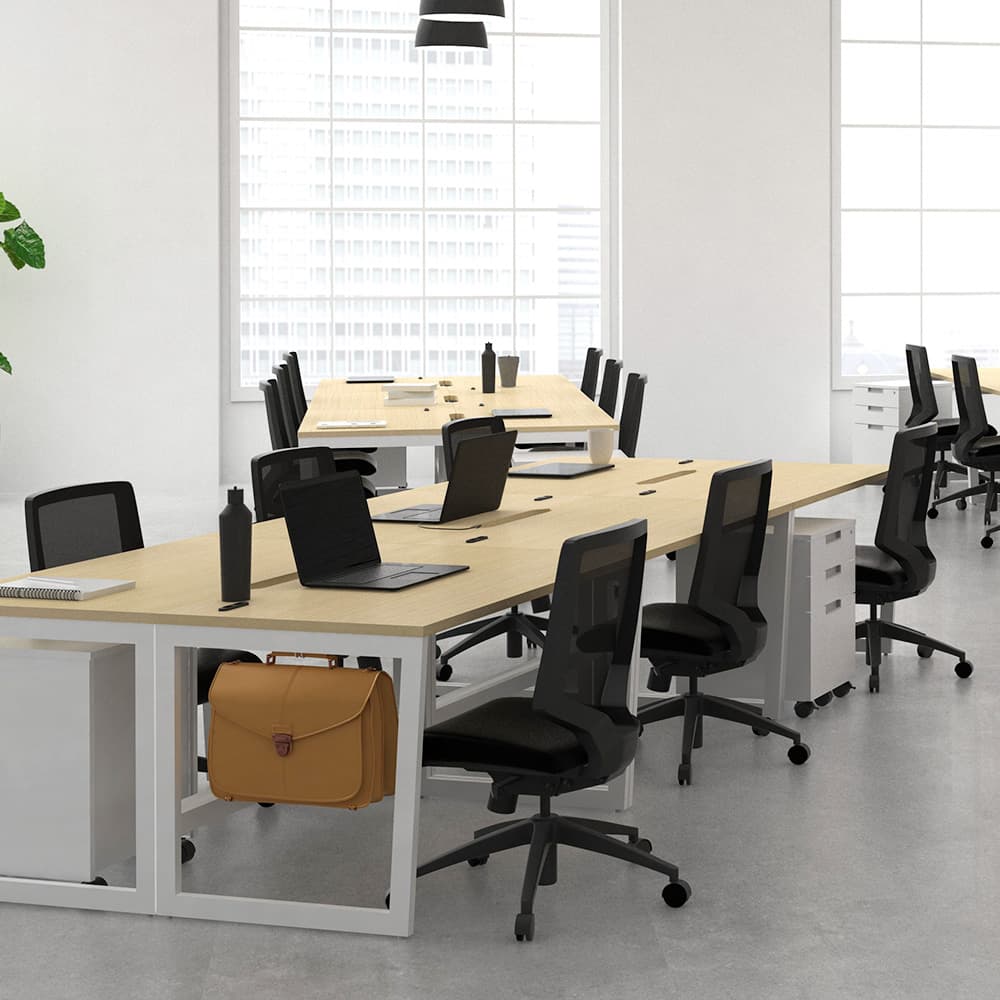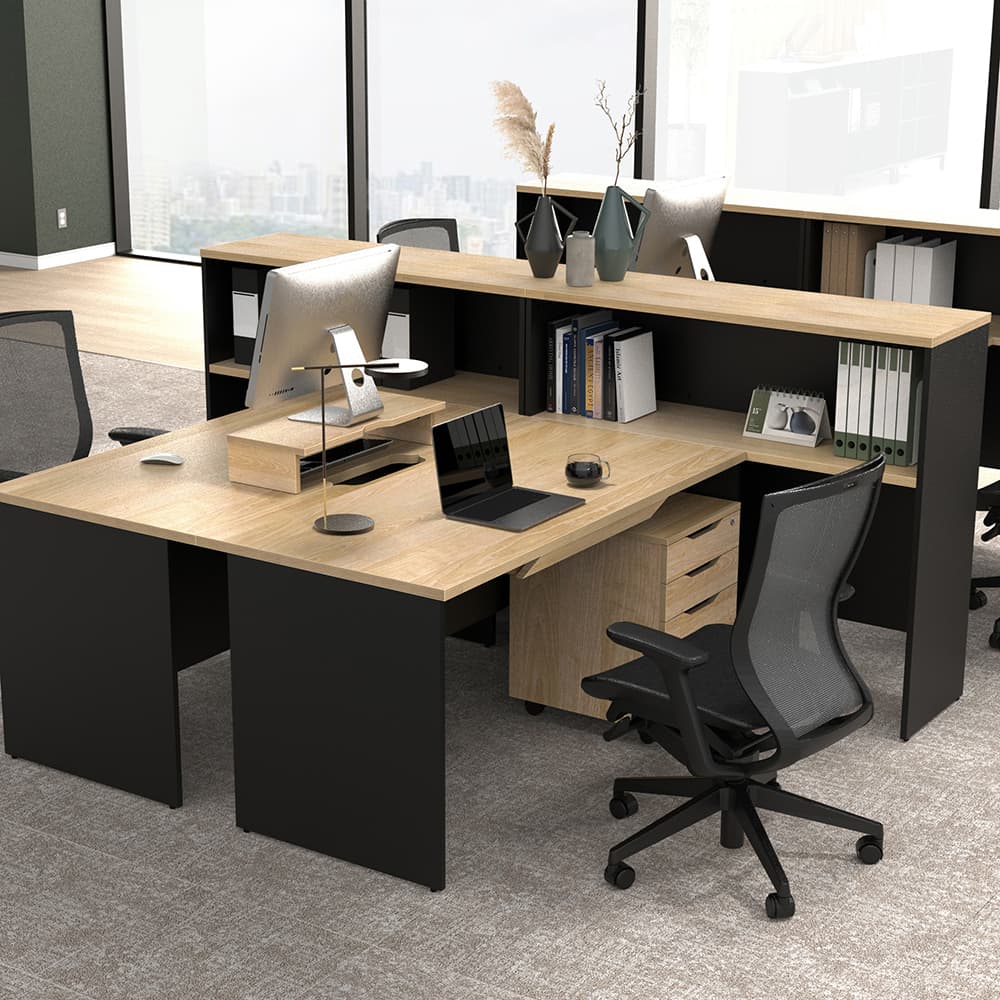 豊富なサイズ展開の木製デスクと収納オプションの組み合わせにより、個別に集中しやすく、豊富なサイズ展開の木製デスクと収納オプションの組み合わせにより、個別に集中しやすく、また部署やチーム内のコミュニケーション促進にもつながる機能的なデスクワーク環境を構築できます。