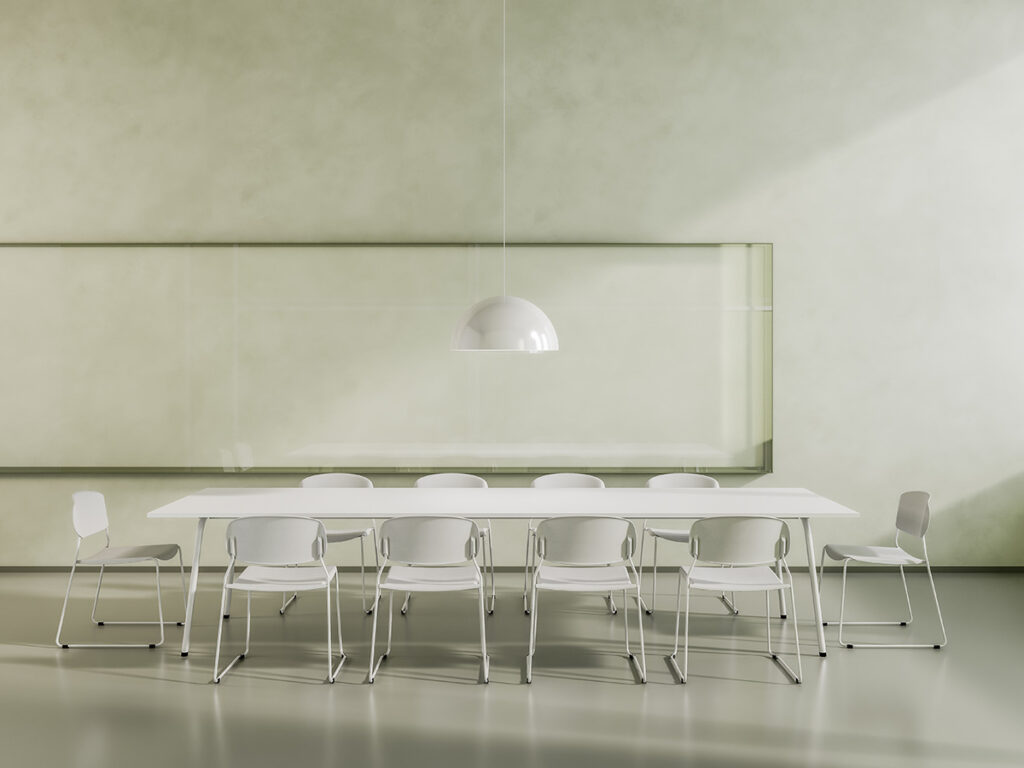 見た目にも軽いデザインのフォリオ ループ脚チェアは、たくさん数を並べても空間を圧迫せず、すっきりとした印象になります。