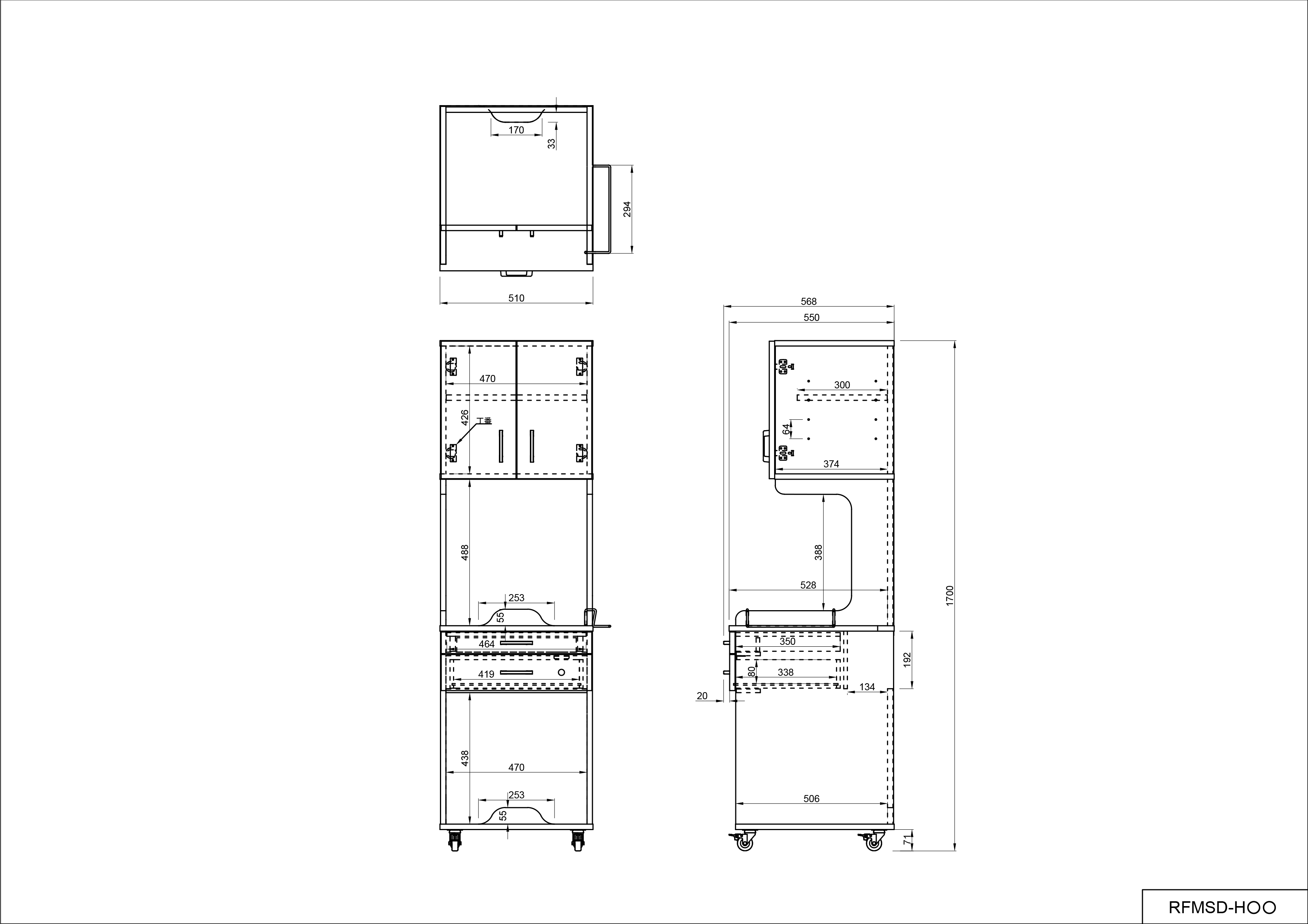 メディットシリーズの床頭台は、共通モジュールによるノックダウン式で、高さはハイ・ミドル・ローの3タイプを完備。下部ユニットは扉・可動棚板の有無を選べ、利用シーンや用途に合わせてお選びいただけます。