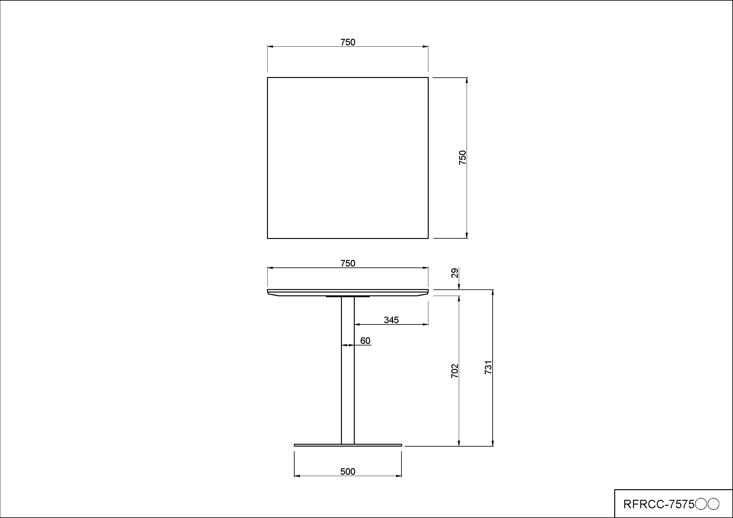2〜4人用に適した正方形天板750x750mm。ロビーや待合スペースの他、カフェ空間なら2人が向かい合って座りドリンクや軽食を置くのにちょうど良いサイズです。壁面設置も可能でスペースを効率よく運用できます。