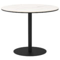 コンパクトな丸形天板φ450mmは、ラウンジやロビーのソファ周りに置くサイドテーブルや小テーブルに最適です。ハイテーブルはドリンクコーナーや小さなエントランスでの案内設置にも活用できます。